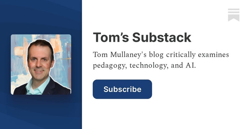 Tom Mullaney's blog critically examines pedagogy, technology, and AI. Click to read Tom’s Substack, by Tom Mullaney, a Substack publication. Launched 4 days ago.