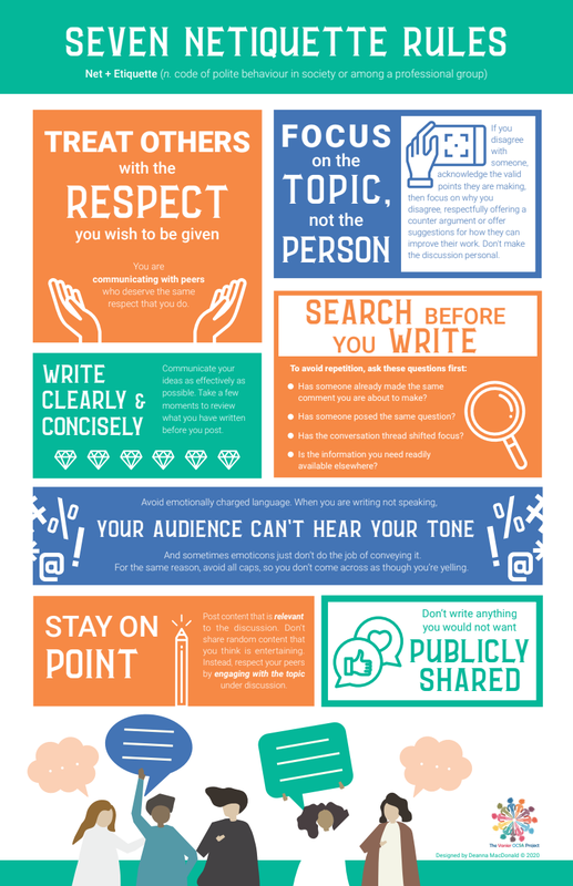 Text of the 7 Netiquette Rules. Be sure to checkout the infographic, designed by Deanna Macdonald, on this page,
