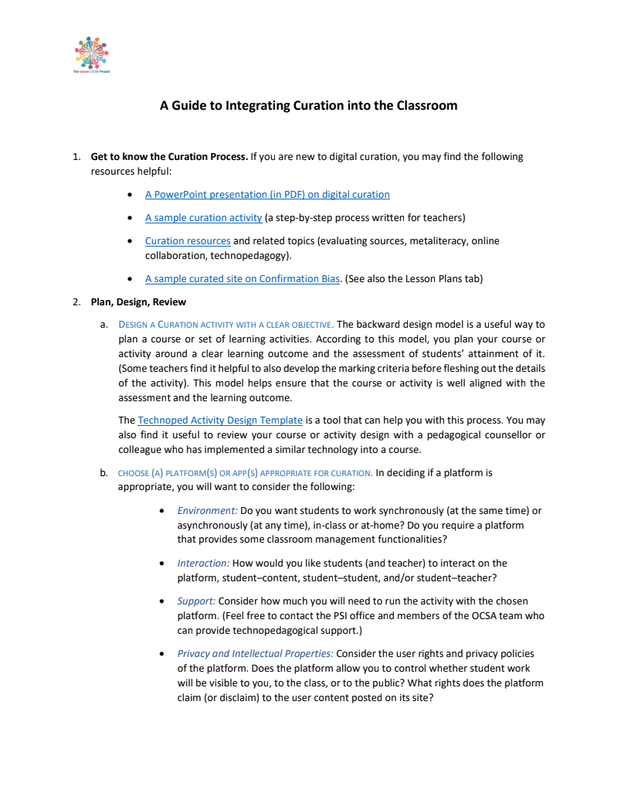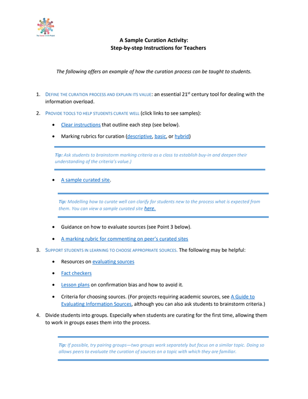 A Sample Curation Activity: Step-by-step Instructions for Teachers