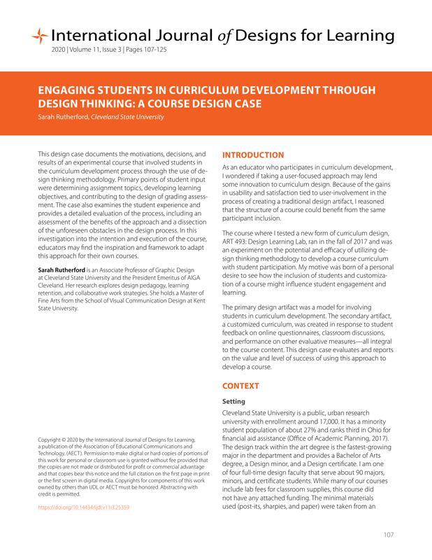 Design Thinking is a mindset and approach to learning, collaboration, and problem solving. In practice, the design process is a structured framework for identifying challenges, gathering information, generating potential solutions, refining ideas, and testing solutions. Design Thinking can be flexibly implemented; serving equally well as a framework for a course design or a roadmap for an activity or group project.